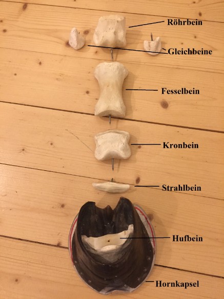 Folgende Bilder stammen von meinem Hufpräparat, in der Regel habe ich es als Demonstrationsobjekt im Auto.